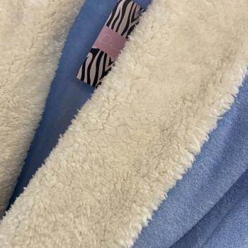 Roupão em plush, apeluciado por dentro, com gola em pelo fake de ovelha.