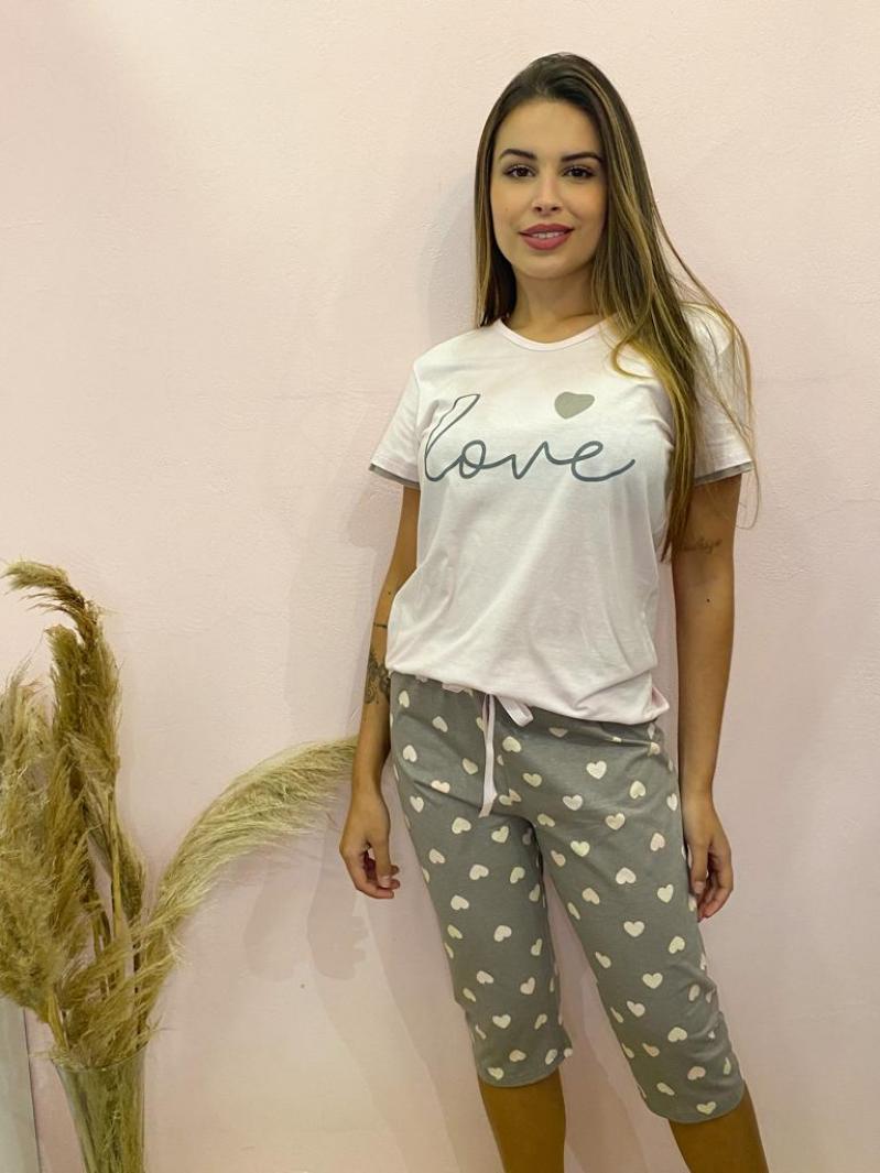 PIJAMA COM CALÇA PESCADOR E BLUSA MANGA CURTA EM MEIA MALHA 100% ALGODÃO.